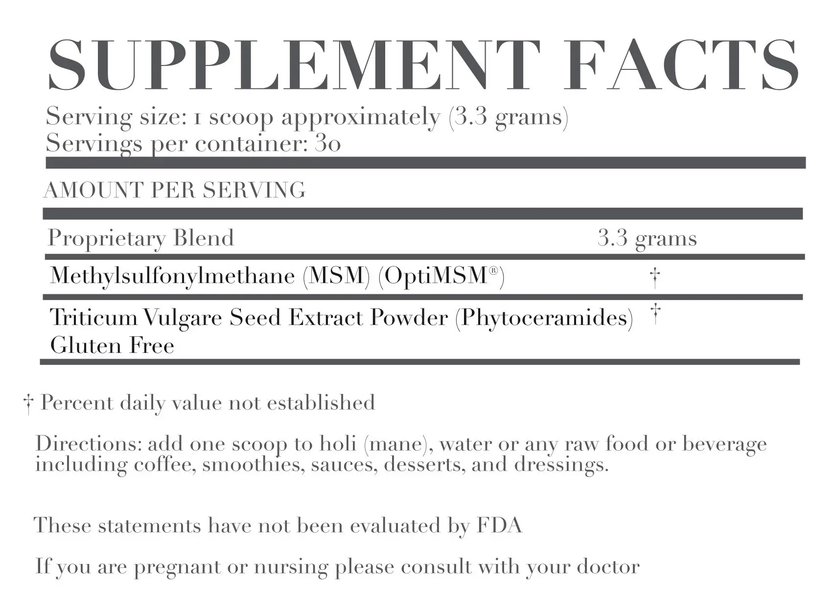 *Note: These statements have not been evaluated by the Food and Drug Administration. This product is not intended to diagnose, treat, cure or prevent any disease. Consult your physician before adding a dietary supplement to your diet.